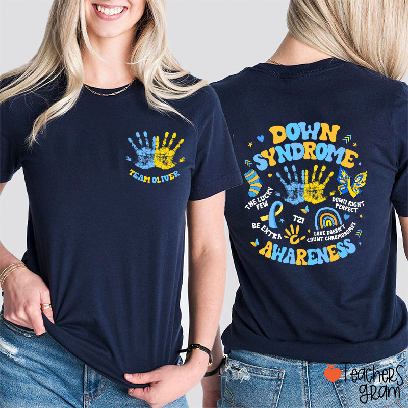 Personalized Name Down Syndrome Awareness Teacher Two Sided T-Shirt