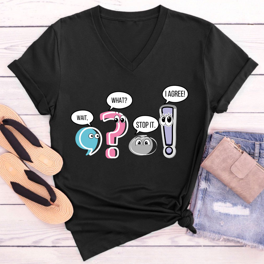 Grammar Wait What Stop It I Agree Teacher Female V-Neck T-Shirt