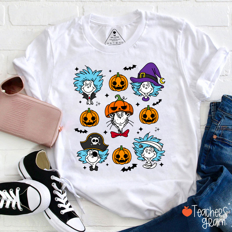 Pumpkin Cartoon Character Teacher T-Shirt