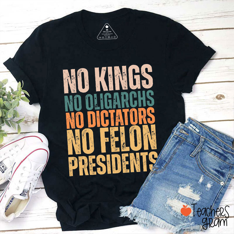 No Kings No Oligarchs No Dictators No Felon Presidents Teacher T-Shirt