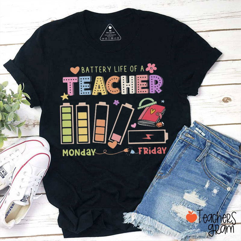 Battery Life Of A Teacher Monday To Friday Teacher T-Shirt