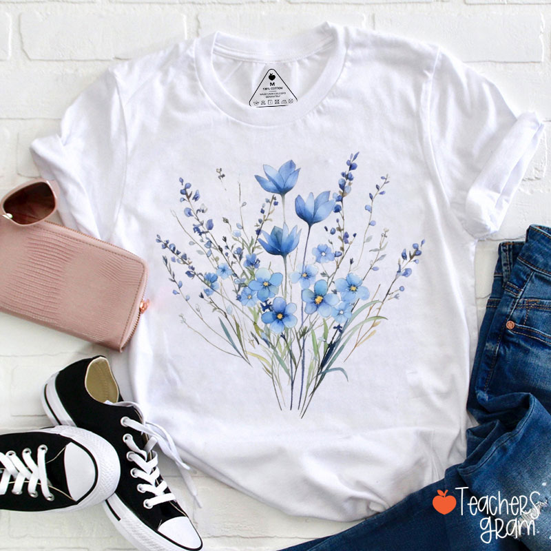 Blue Flower Bouquet Teacher T-Shirt
