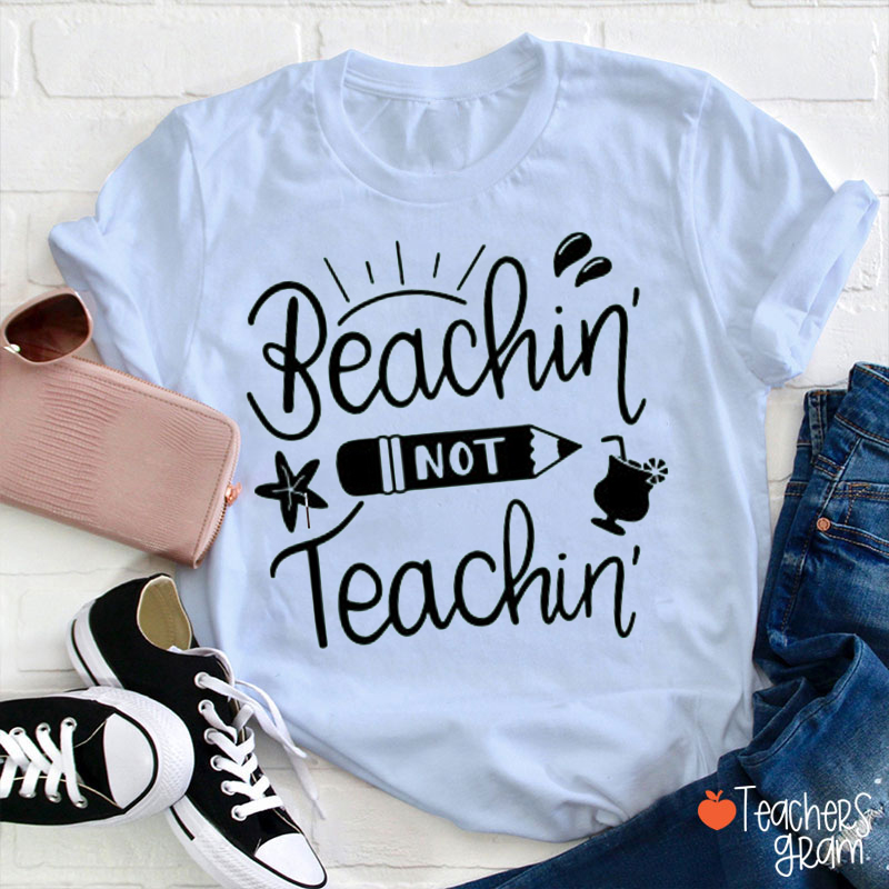 Beachin' Not Teachin' Pink Poodle Creations Teacher T-Shirt