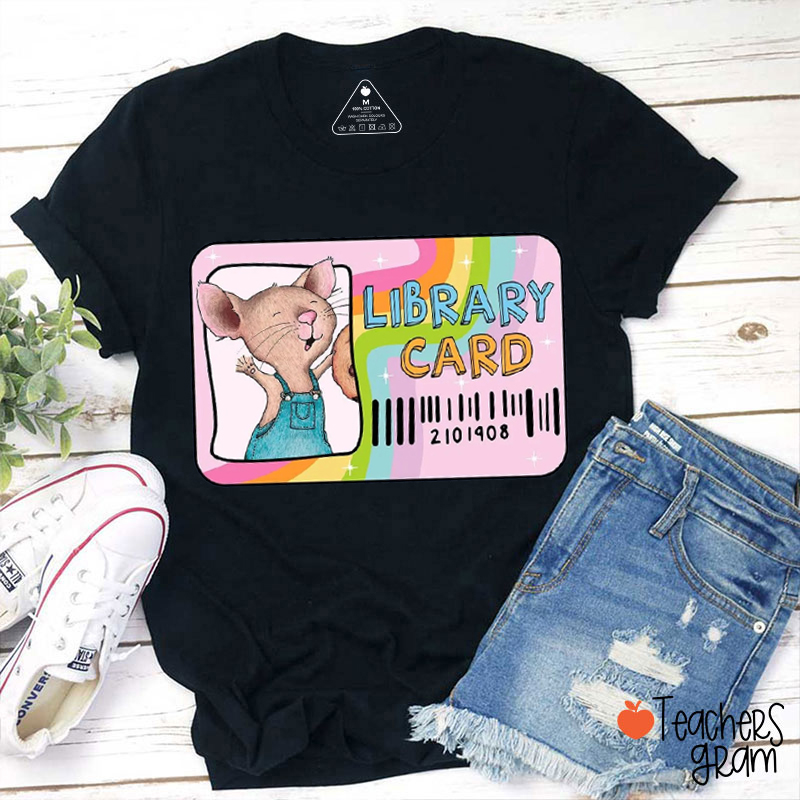 Overalls Mouse Library Card Teacher T-Shirt