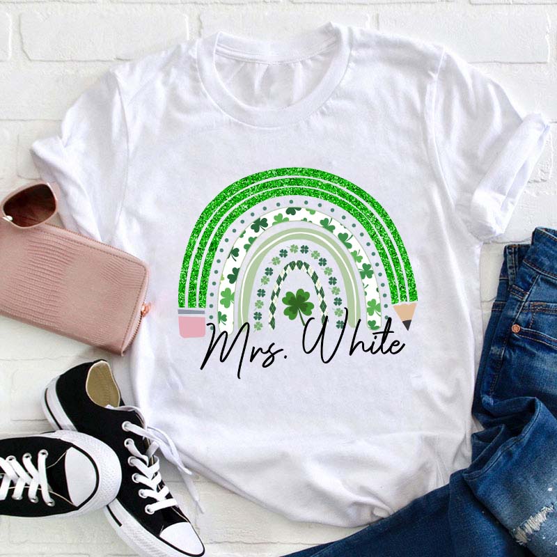 Personalized Green Rainbow Pencil Name Teacher T-Shirt