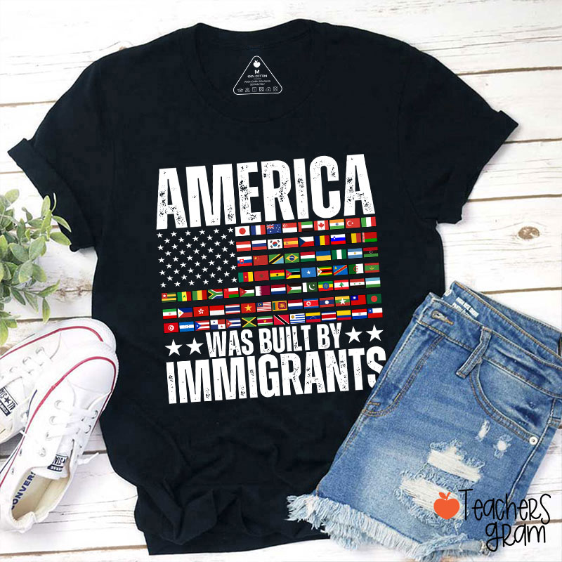 America Was Built By Immigrants USA Flag Teacher T-Shirt