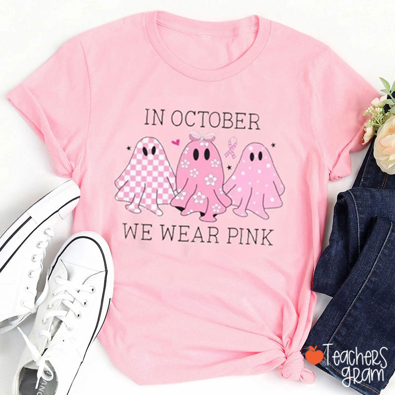 October Pink Ghosts Wear Pink For Awareness Teacher T-Shirt