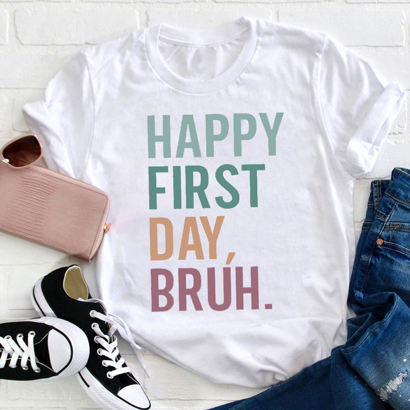 Hooray Happy First Day Bruh Teacher T-Shirt