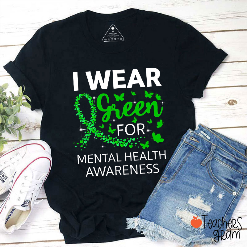 I Wear Green For Mental Health Aawareness Teacher T-Shirt