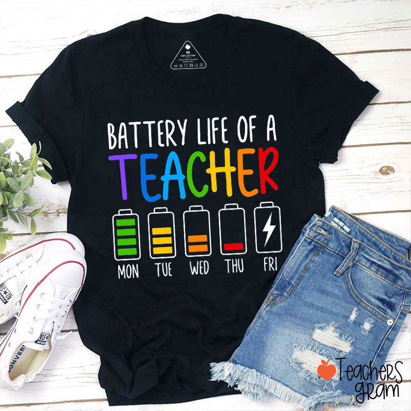 Battery Life Of A Teacher From Monday To Friday Teacher T-Shirt