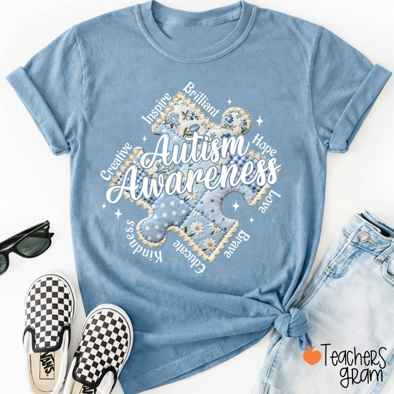 Faux Patchwork Inclusion Autism Puzzle Teacher T-Shirt