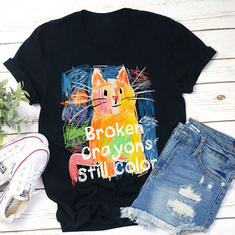 Broken Crayons Still Color Cat Teacher T-Shirt