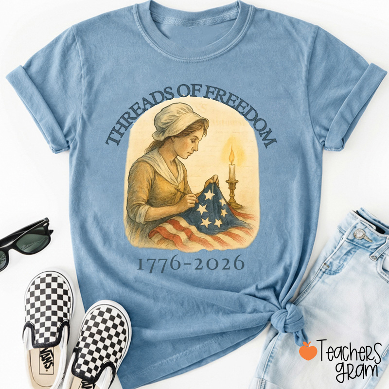 Threads Of Freedom 1776-2026 Teacher T-Shirt