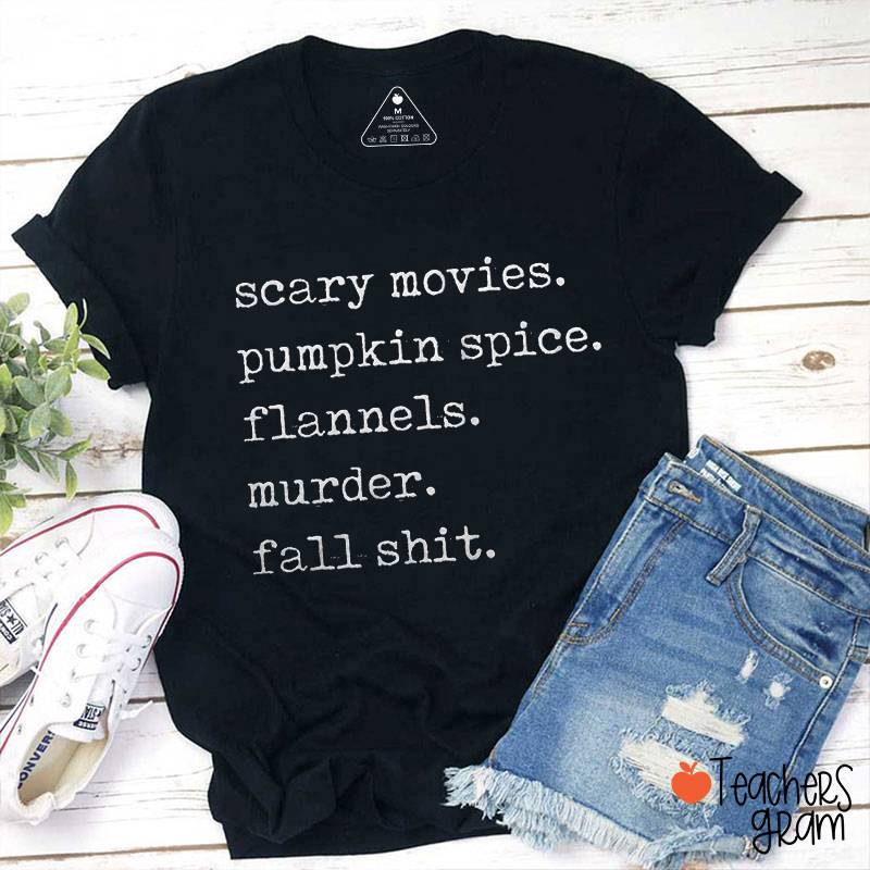 Scary Movies Pumpkin Spice Flannels Murder Fall Shit Teacher T-Shirt