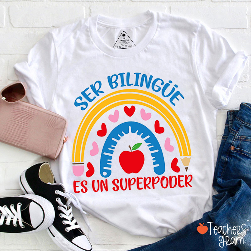 Ser Bilingue Es Un Superpoder Spanish Teacher T-Shirt