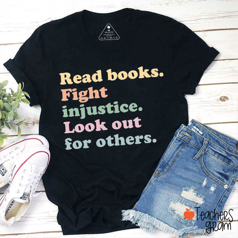 Read Books Fight Injustice Look Out For Others Teacher T-Shirt
