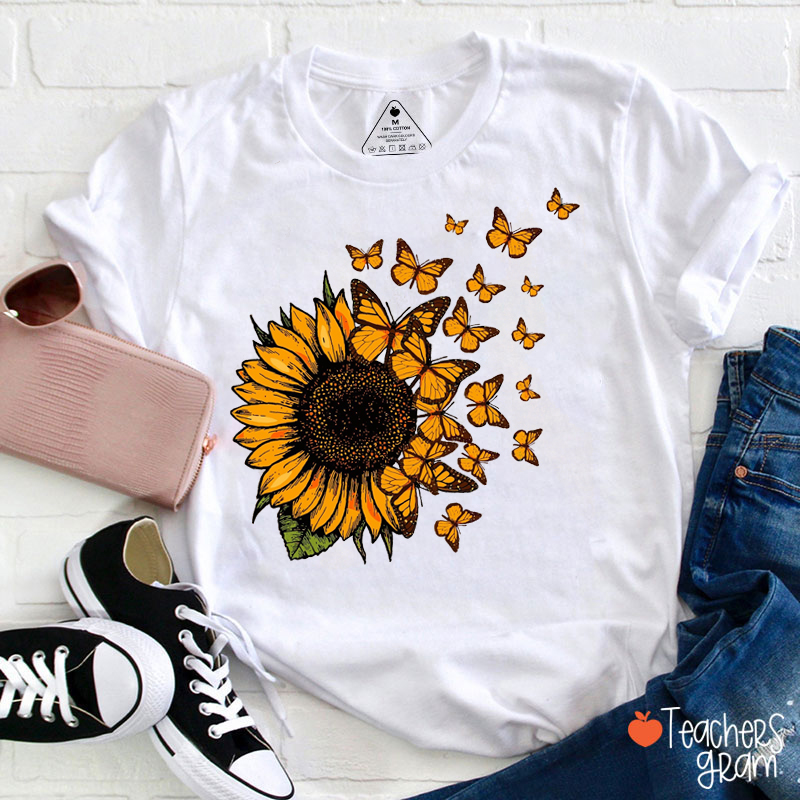 Sunflower Butterfly Teacher T-Shirt