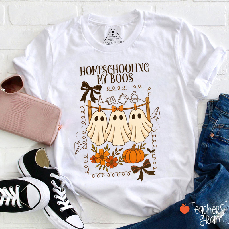 Personalized Name And Initials Bow Ghost Halloween Teacher T-Shirt