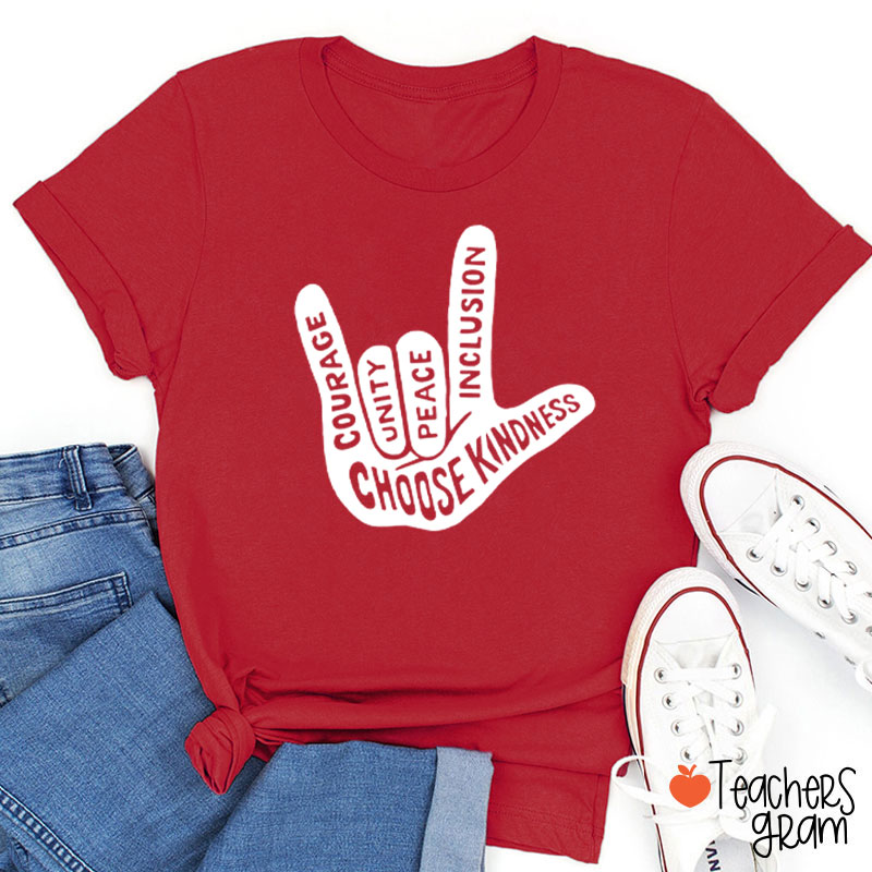 Choose Kindness Courage Unity Peace Inclusion Teacher T-Shirt