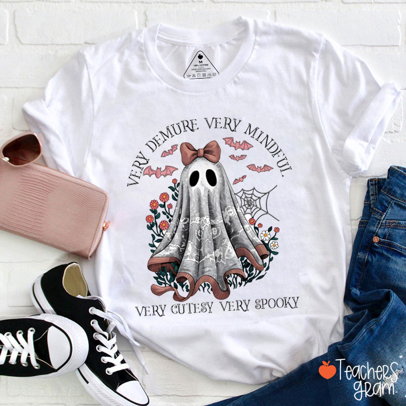 Very Demure Very Mindful Very Cutesy Very Spooky Teacher T-Shirt