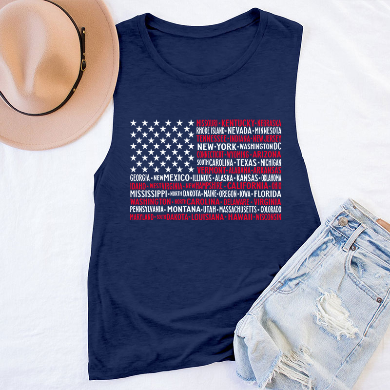 Vintage American Flag 4th Of July Teacher Tank Top