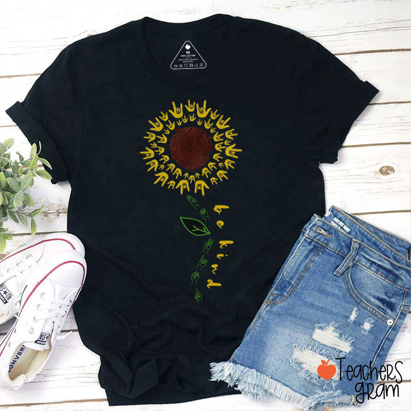 Be Kind American Sign Language Sunflower Teacher T-Shirt