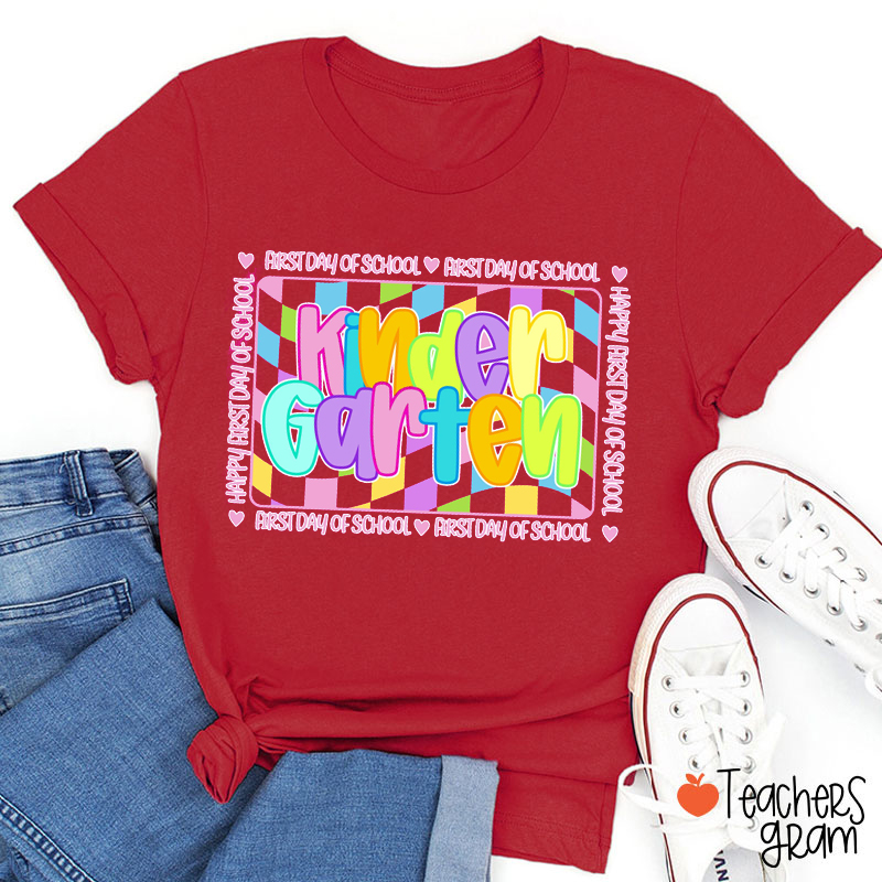 Personalized Grade Hollow Checkered First Day Of School Teacher