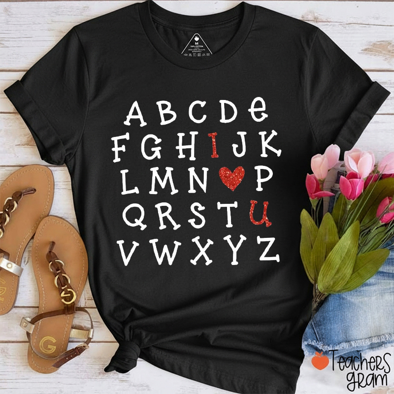 Glitter Cute Love Heart Graphic Teacher T-Shirt