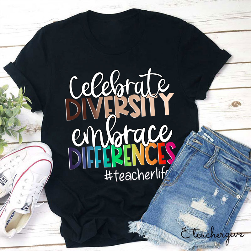 Teacherlife Celebrate Diversity Embrace Differences Teacher T-Shirt