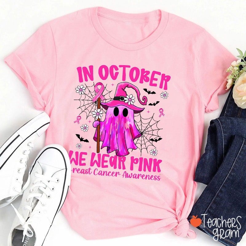 In October We Wear Pink Oil Painting Ghost Teacher T-Shirt