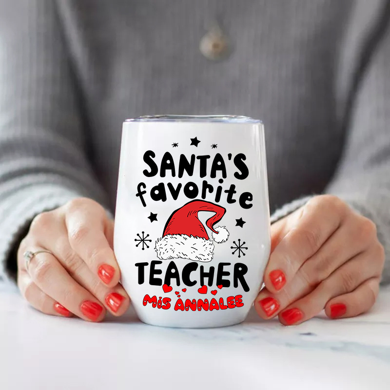 Personalized Santa's Favorite Teacher Christmas Teacher Wine Tumbler