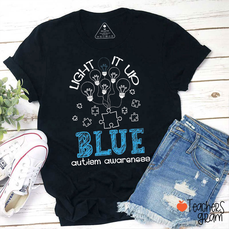 Light It Up Blue Autism Awareness Teacher T-Shirt