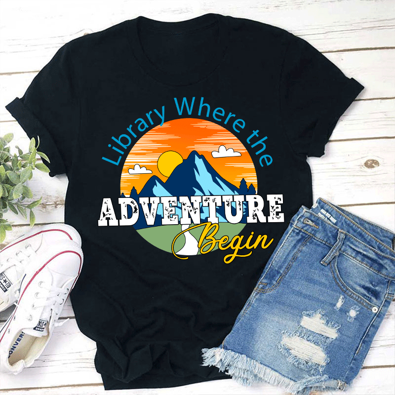 Library Where The Adventure Begin Teacher T-Shirt