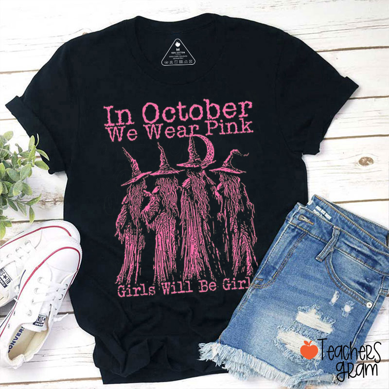 In October We Wear Pink Girls Will Be Girls Teacher T-Shirt
