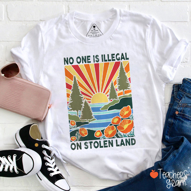 No One Is Illegal On Stolen Land Activist Protest Teacher T-Shirt