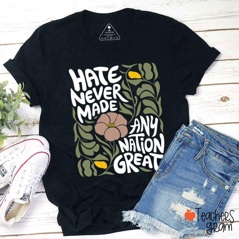 Hate Never Made Any Nation Great Flower Teacher T-Shirt