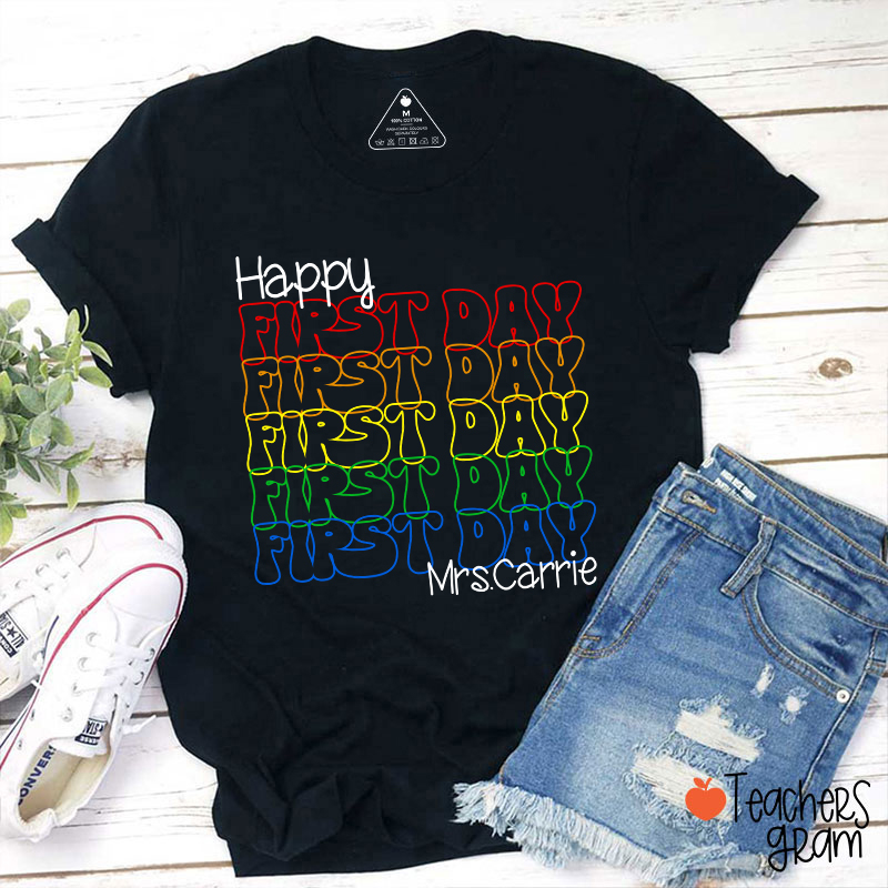 Personalized Name Happy First Day Teacher T-Shirt