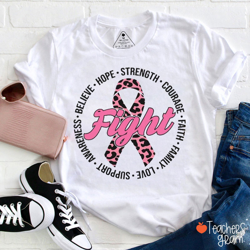 Believe Hope Pink Ribbon Fight Teacher T-Shirt