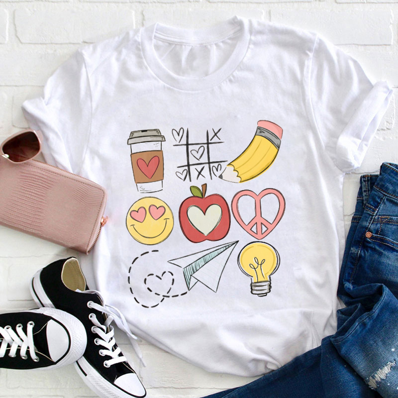 Personalized Name Cute Icon With Motivational Messages Teacher Two Sided T-Shirt