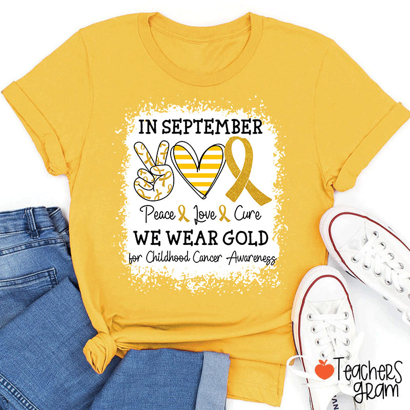 Peace Love Cure We Wear Gold For Childhood Cancer Awareness Teacher T-Shirt