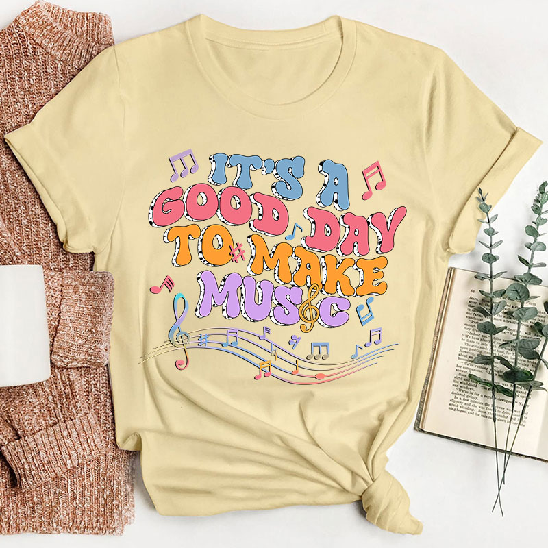 Tt's A Good Day To Make Music Musical Note Printing Teacher T-Shirt