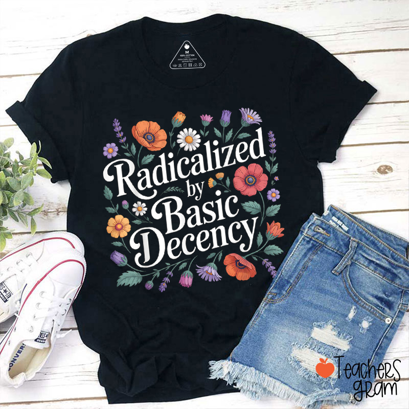Radicalized By Basic Decency Flowers Teacher T-Shirt
