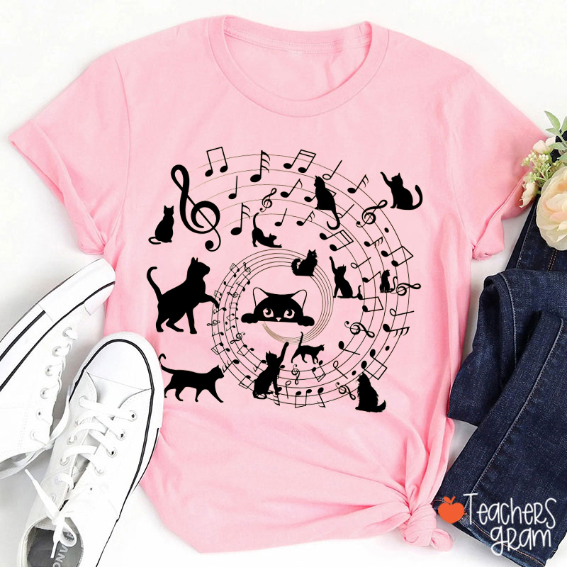 Cat Playing Musical Notes Teacher T-Shirt