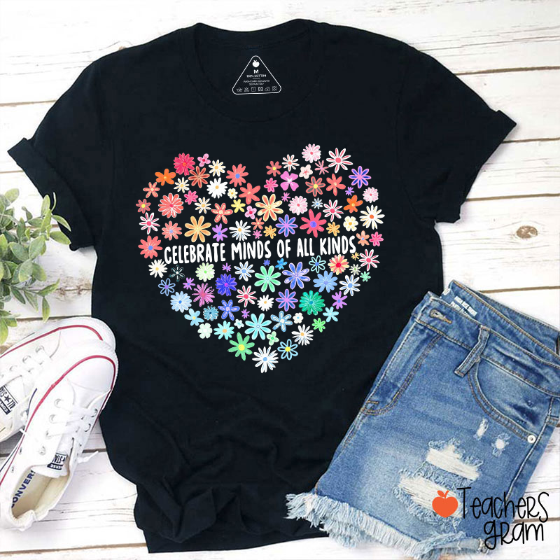 Celebrate Minds Of All Kinds Flower Heart Teacher T-Shirt