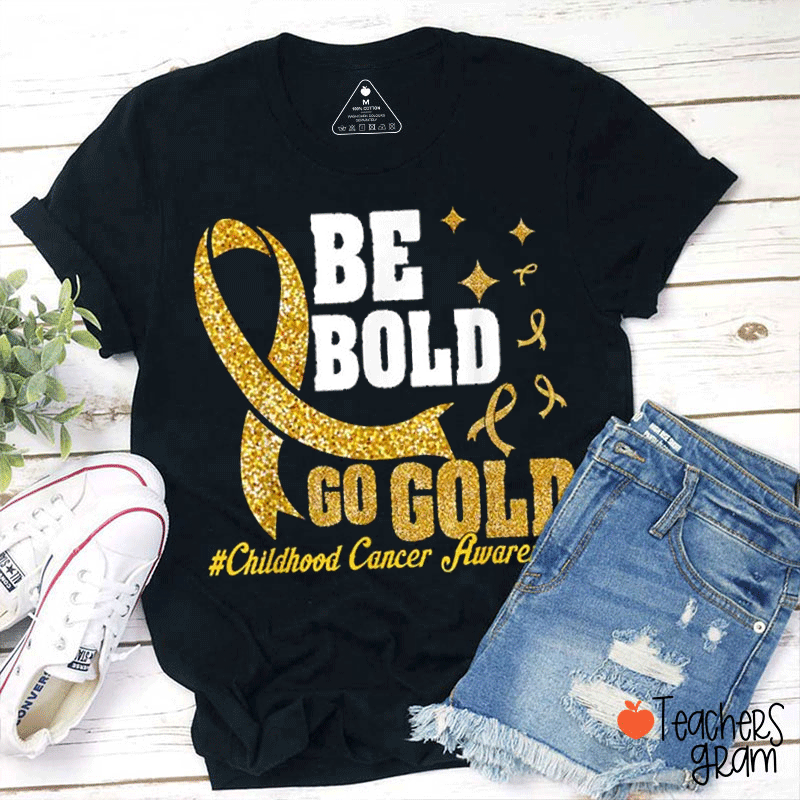 Be Bold Go Gold Childhood Cancer Awareness Teacher T-Shirt