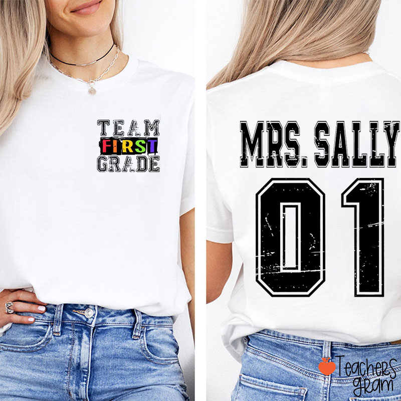 Personalized Grade And Name Dream Team First Day Teacher Two Sided T-Shirt