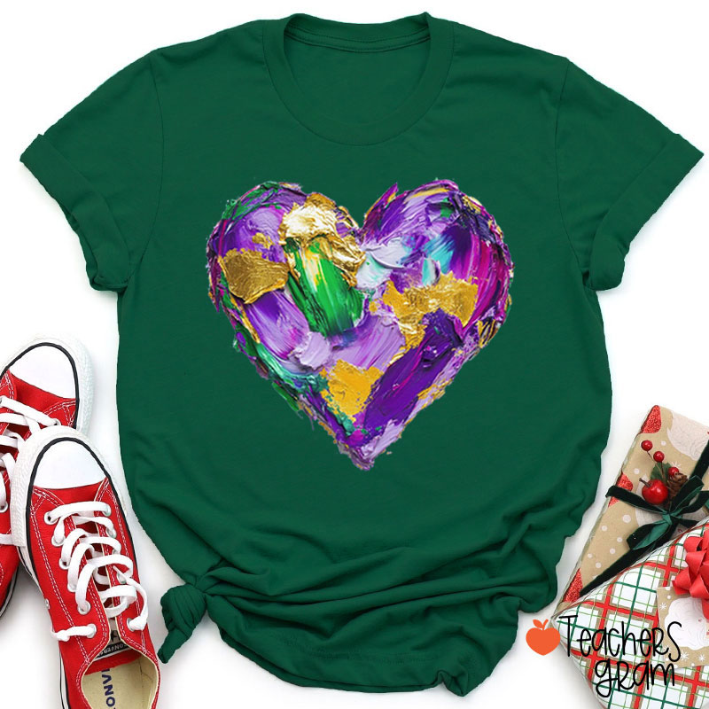 Mardi Gras Oil Painting Heart Teacher T-Shirt