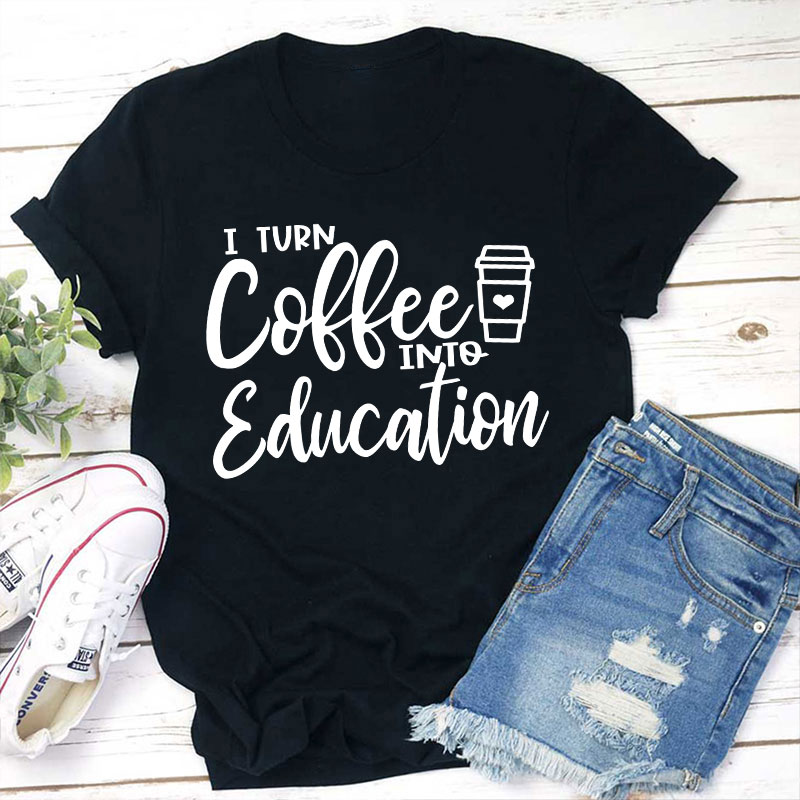 I Turn Coffee Into Education Teacher T-Shirt