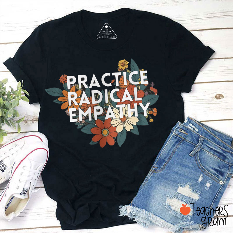 Pretty Floral Practice Radical Empathy Teacher T-Shirt