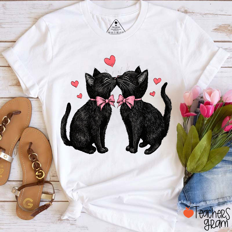 Cute Black Cat Valentines Teacher T-Shirt